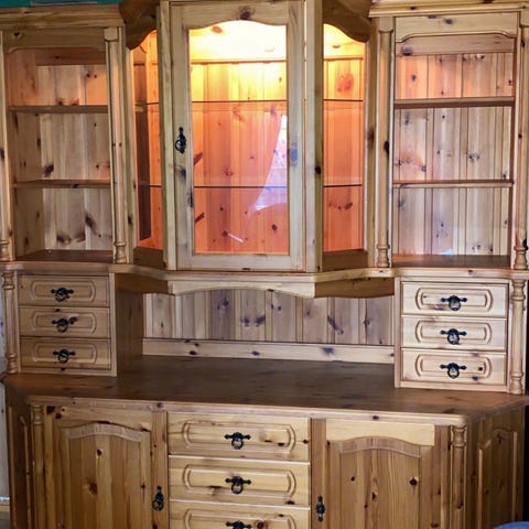 Stor seksjon med mye plass. Noe bruksmerker, se flekk/fargeforskjell siste bilde. En hylle er ikke rett.