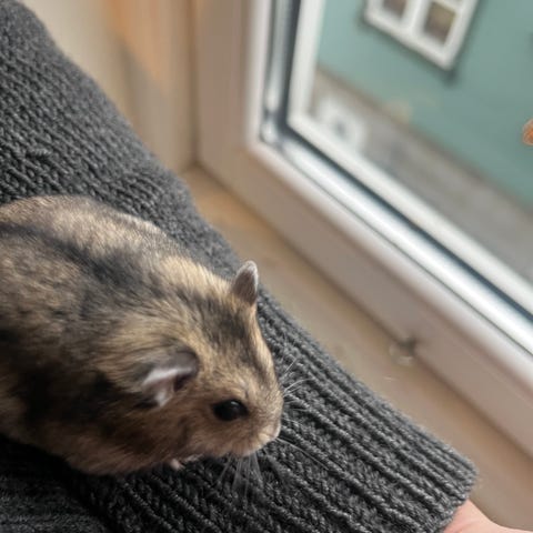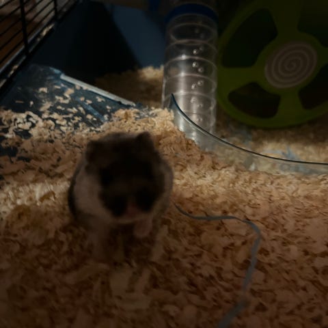 Nydelig dverghamster selges da vi må redusere gjengen litt. 5 mnd gammel, følger med bur og noe tilbehør. Han har veldig fine farger, litt sky i starten men veldig nyskjerrig!