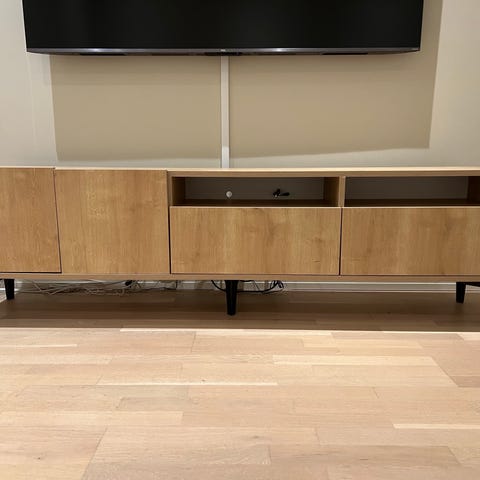 Hvit tv-benk i god stand.