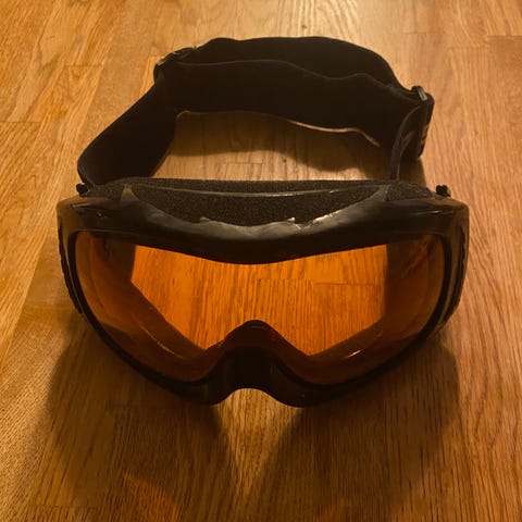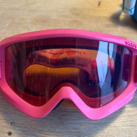Hvite goggles til alpint/snowboard el. Brukt av jente 7-8 år.