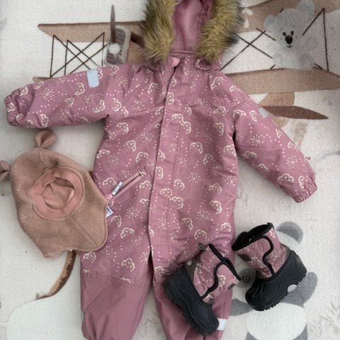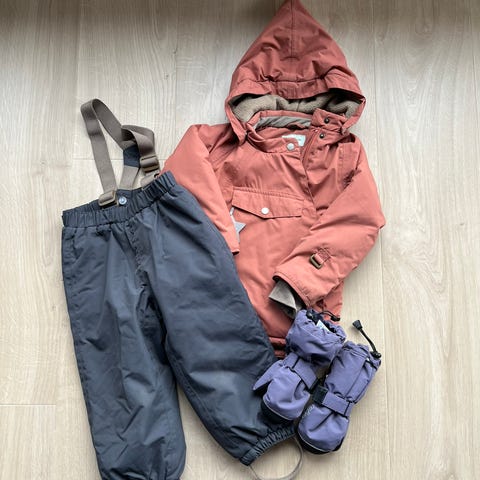 Veldig fin pakke av yttertøy i str. 104. Vinterjakke og bukser fra Tiny Trolls of Norway. Hele og finne, men noe farge forkjell da jakke ble brukt mer enn bukser. Ull lue og vintervotter fra Name it (står 6-12 mnd men stor i størrelsen og ble brukt samtidig).