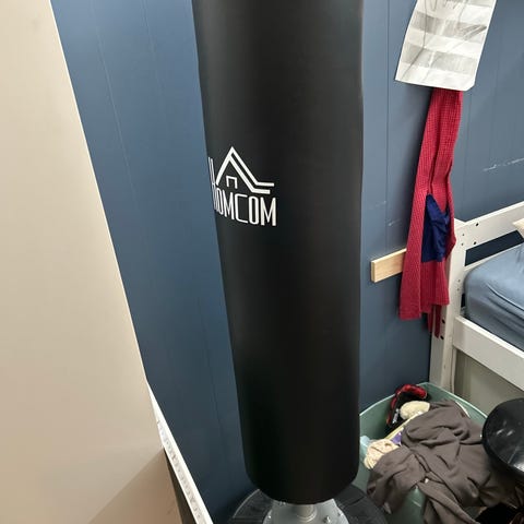 Ubrukt. Ca. 40 kg sekk fylt med tekstiler beregnet til slag og spark. Kostet 1500,-
