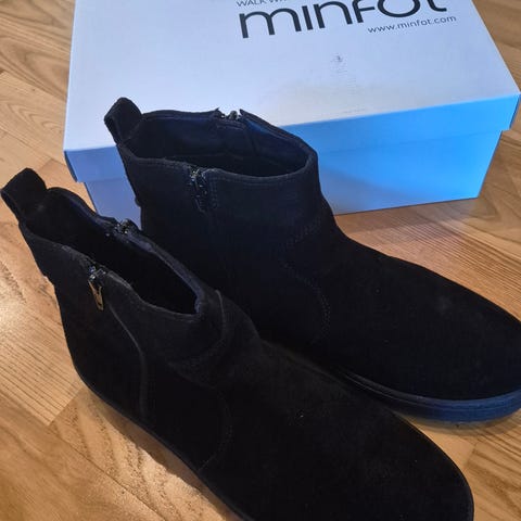 Støvlene har en robust såle med godt grep og er foret for ekstra varme. Lite brukt, noe flekker foran på skoen, kan nok vaskes bort. Ingen skade.
