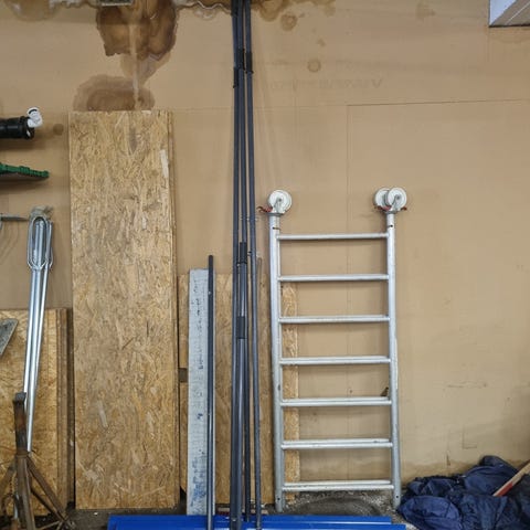 Mål L 5,5 meter, B 9,5 meter, H 7 meter pr. seksjon . Innvendig blir det ca 45 m2 og takhøyde på ca 6 meter. Har to seksjoner som kan festes sammen i lengderetning. To endevegger med vinduer og døråpning. Endevegger kan brukes på en seksjon eller i endene når to seksjoner er satt sammen. Festes med borrelås. Stålbøyler nederst utvendig for forankring til bakken. Kan bruke jordspyd som forankring.