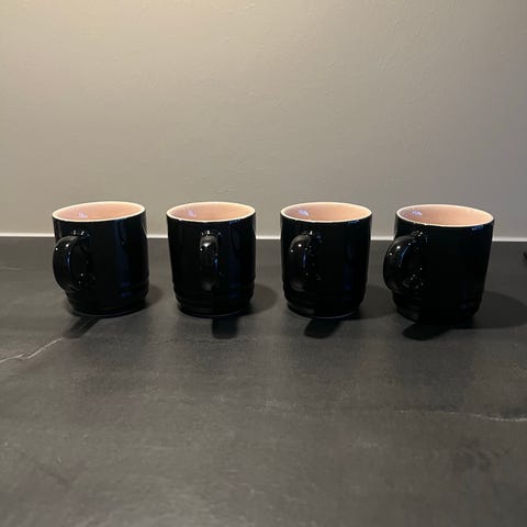Le Creuset kopp i svart farge. Laget av solid materiale, egnet for daglig bruk. Passer til servering av varme og kalde drikker.