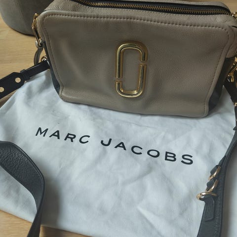 Pent brukt veske fra Marc Jacobs selges. Modellen heter Snapshot. Har plass til det mest essensielle når du skal på bytur eller kafé. To rom som lukkes med glidelås. Er en flat lomme for bankkort på innsiden.