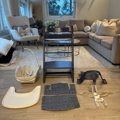 Selges billig siden det er forskjellige farger i pakken og hull i bordet (vi borer hull fordi vi brukte bordplaten til en annen stol sånn at vi kunne feste den med strips).