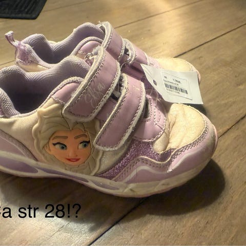 Helt nye joggesko/blinkesko med Frost - Elsa og Anna motiv. Dessverre litt for små for vår lille.