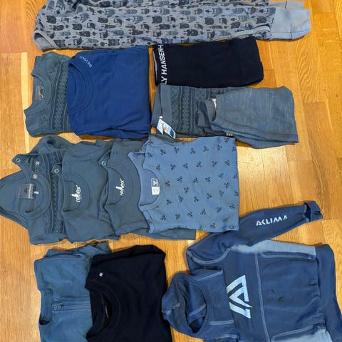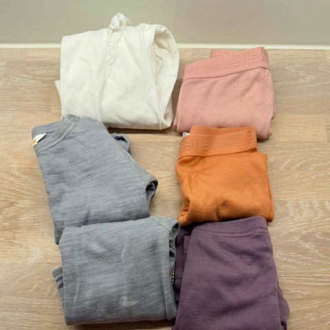 Ullpakke diverse merker (refleks, Joha, name it). Pent brukt, med noe mindre bruksmekrer. Ingen hull. Liten flekk i krage på lilla body, se bilde. 2 bodyer og 4 ullbukser. Str 92 på alle plagg utenom en bukse som er i størrelse 90. Selges samlet for 400.