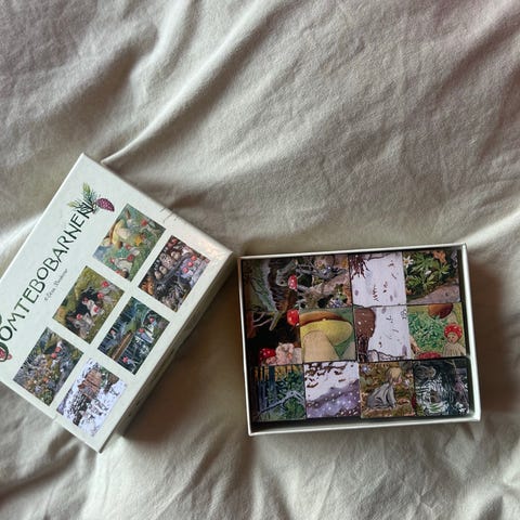 Tomtebarna kubbepuslespill + kort med konvolutt. Elsa Beskow