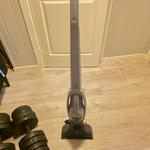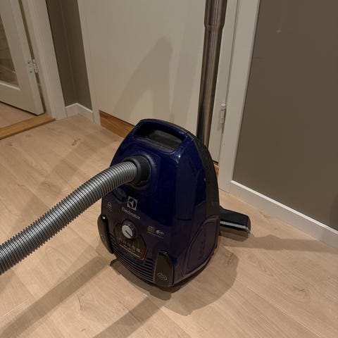 Electrolux PowerForce støvsuger med effekt på 700 W. Modellen er hvit og leveres med standard munnstykker for rengjøring av gulv og andre flater. Godt brukt med noen synlige merker på støvsugeren.