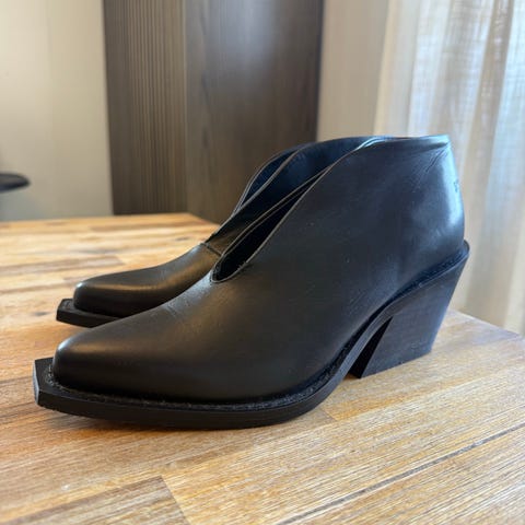 Slightly used black leather shoes s.37 for Kr100. Bought for Kr749. Brand is BALD. Pick up only. Message to arrange pickup details. RFS: leaving Norway and will not be able to use it in my home country.