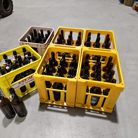 Ølkasse med diverse 0,33 flasker. Perfekt til hjemmebrygging.