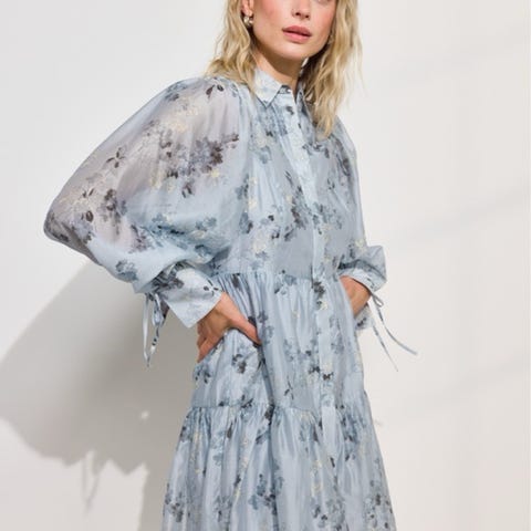 Tiffany bluse ifra Match. Nypris 1000 kr. Lyseblå /grå farge. Bluse med l delikat mønster av lett kvalitet med høy andel TENCEL™ lyocell. Blusen har ton i ton fôr i kroppen, krage og knappestolpe med lyse knapper, volumiøse puffermer med mansjett med knyting og trykknapp samt ledig passform.