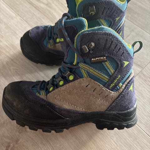 Nesten ubrukte alpina fjellsko/tursko str 31 selges kr 250. Ingen slitasje eller skjevtråkk på skoene. Flotte, gode sko som ble kjøpt i "feil sesong" og som ungen da vokste alt for raskt ut av.