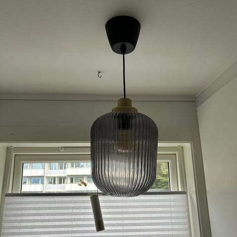 IKEA taklampe med glasskuppel og svart oppheng