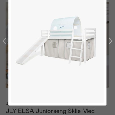 Selger vår JLY juniorseng i grå farge. Den er veldig pent brukt, har noen små ubetydelige bruksmerker.