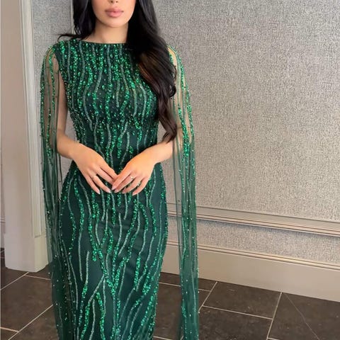 Ekstra paljetter/perler tilhørende kjolen følger med.