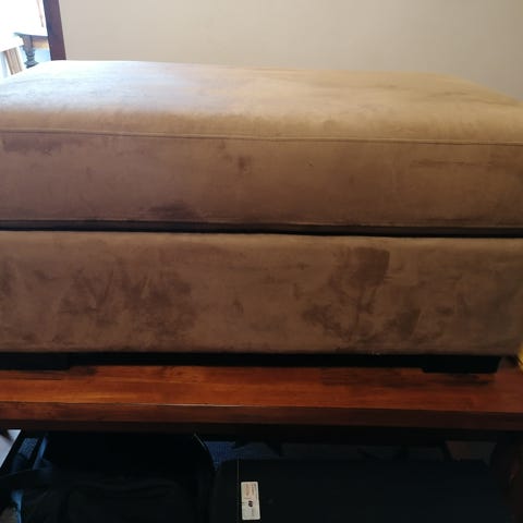 Firkantet sittepuff i fløyel med dypt heftede og kledde knapper. Kombinasjonen av sikksakkfjærer, springfjærkjerne og skumgummifyll gir maksimal sittekomfort. En sittepuff kan gi en verdifull sitteplass om gjestene blir mange. Puffen er framstilt med patchwork-teknikk. Fløyel er et stoff med kort lugg slik at det endrer seg i forhold til hvordan lyset faller. Det gir puffen en levende look. Stoffets slitestyrke er på 28 000 Martindale.