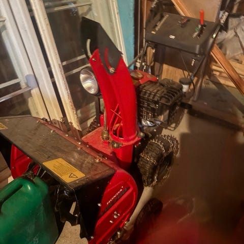 Honda HS1132 snøfreser i rød farge. Maskinen har kraftig motor og bred snøoppsamler, egnet for effektiv snørydding. Utstyrt med styrespak og belysning for bedre kontroll og brukervennlighet. Ny olje og nye reimer. Ny lakk i org farve, ingen rust og lite brukt. Åsmod ca 2005