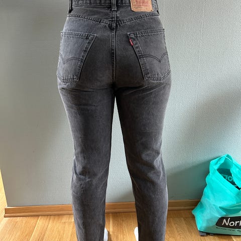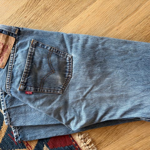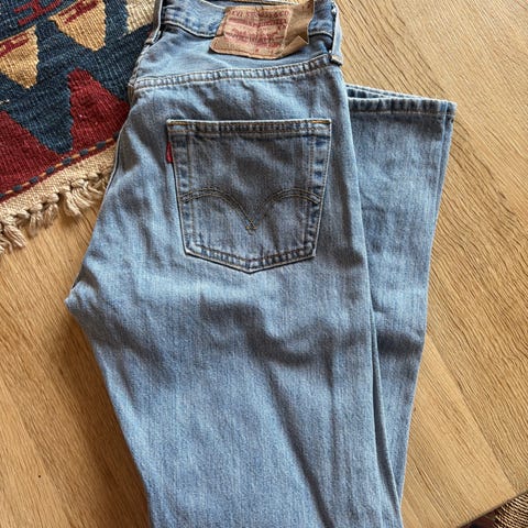 Levi's Vintage Straight ankle jeans i blå lysfarge, størrelse W30. Pent brukt ute noe synlig slitasje. En svak flekk på ene låret.