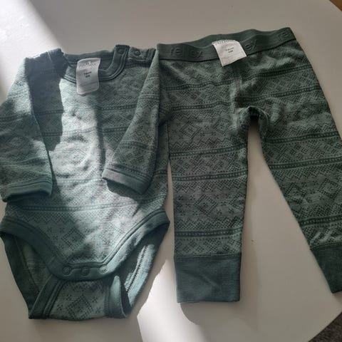 Pent brukt ullsett i grønnfarge med body og longs fra Reflex. Brukt til ett barn og vasket med parfymefritt ullvaskemiddel. Kan ikke se noen spesielle flekker eller andre anmerkninger på plaggene.