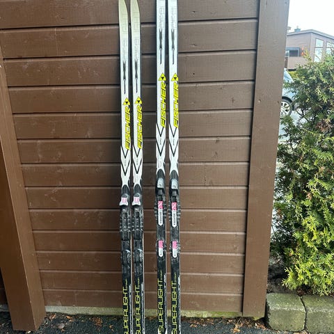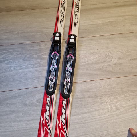 Smørefrie Fischer sprint crown 90 cm med rottefella start binding. Brukt et par ganger