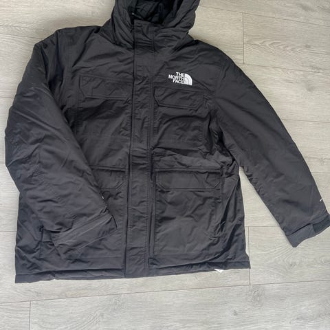 The North Face Summit Series jakke i størrelse XL, svart farge, laget av Gore-Tex materiale. Jakken er designet for utendørs bruk med fokus på værbestandighet og pusteevne. Innvendig fleece som kan fjernes.