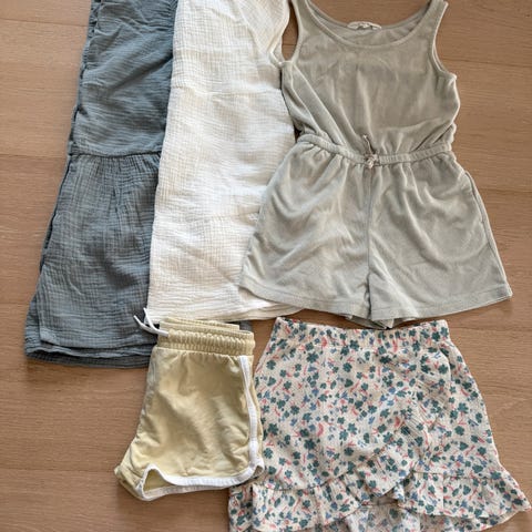 Stor sommer/ ferie pakke i str 122-128. 30 stk til sammen. Forskjellige merker, blant annet bik bok, lindex, h&m, f&f, primark. Solhatt og sko følger med. Kan sendes hvis kjøperen betaler frakt.
