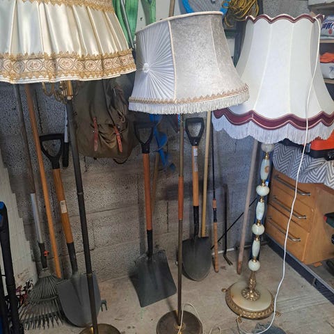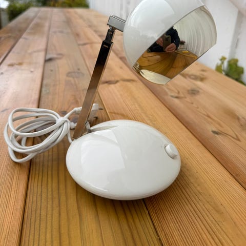 Fungerer perfekt som stemningsbelysning i stue, soverom eller lesehjørne. Dropp skjermen og sett i en stor dekorpære for et røffere uttrykk. Vi har hatt denne som en stilig detalj i en teak-reol som dessverre er solgt.