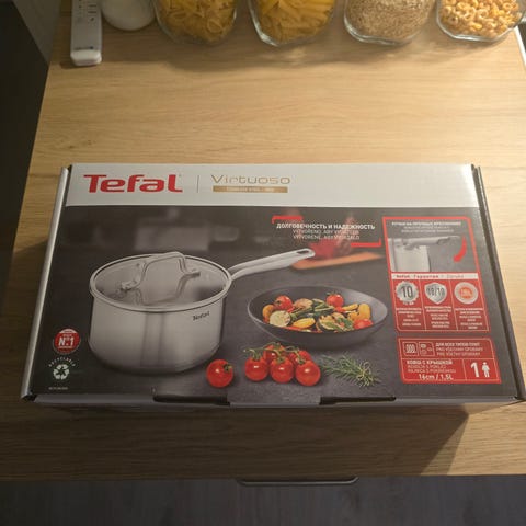 Var en av favorittene, har masse praktiske funksjoner: lett å helle ut vann, har to typer hull på sidene av lokket som gjør at man kan helle ut vannet uten å bruke sil, det er også litermål på innersiden av kasserollen (fra 0.5l til 2l).