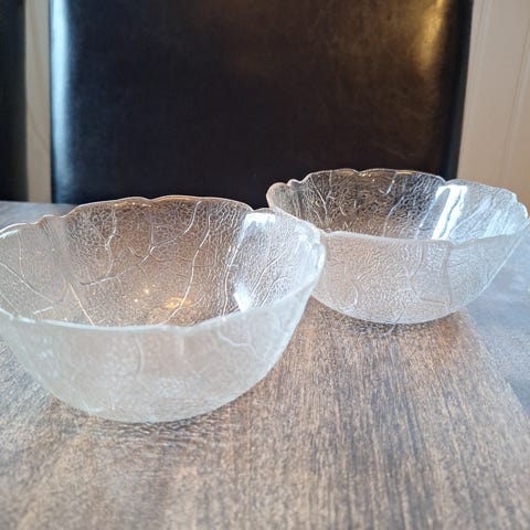 Pent brukte Arcoroc Aspen Leaf glassfat og boller.
