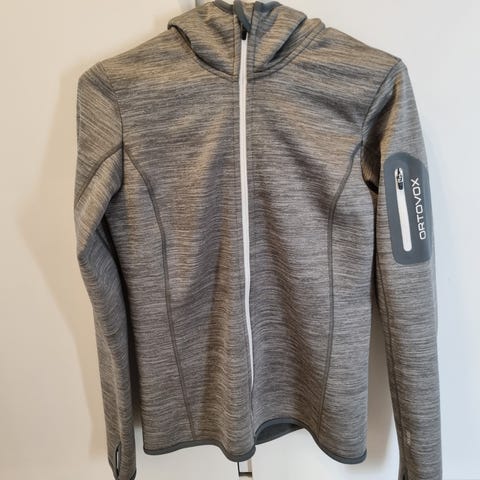 Selger en pent bruk, sjøgrønn Ortovox merinofleece i størrelse S. Et veldig lite hull på venstre arm, se bilde. Ingen nupper eller annen slitasje,