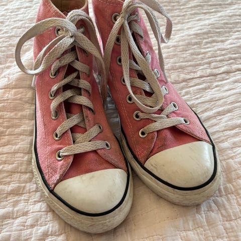 Converse barnesko for jente i størrelse 34. Skoene har turkis farge og er laget av tekstilmateriale. Modellen er høye sneakers med snøring.
