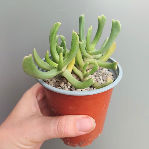 Potte ø: 10,5 cm. Substrat: mineralsk. Det er nylig kuttet noen deformerte vester som var der pga dårlig lys. Plante er i dvale, kan begynne vanning ca i starten av mai hvis det blir solrike dager. Solrik plassering, så blir nye vekster store og fine! Selges fordi jeg nedgraderer samlingen. Kan sendes når det er ca over 5 varmegrader.