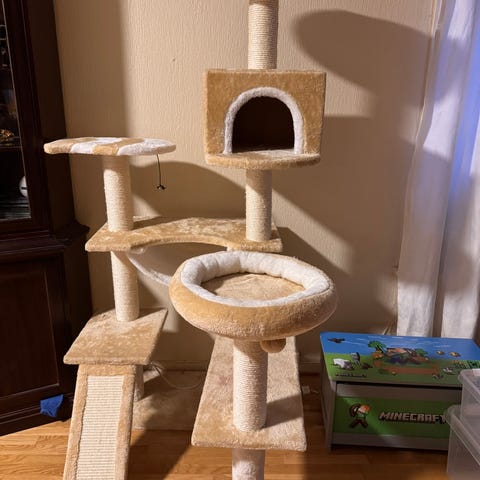 Fint klore- og klatrestativ til en liten katt. Kjøpt nytt i høsten 2025 og knapt brukt.