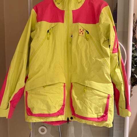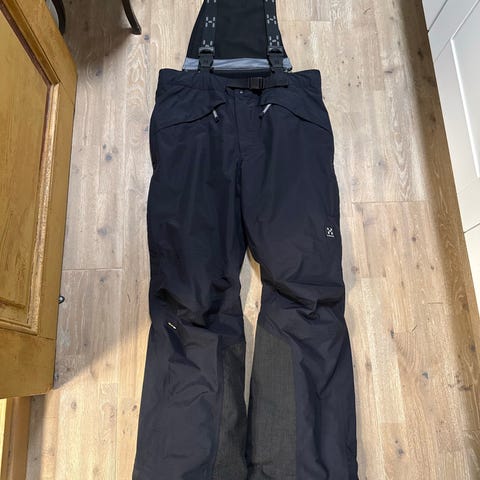 Haglöfs skal bukse i størrelse S for dame, laget med Gore-Tex materiale. Buksen er svart og designet for å gi beskyttelse mot vær og vind, egnet for utendørsaktiviteter. Veldig lett