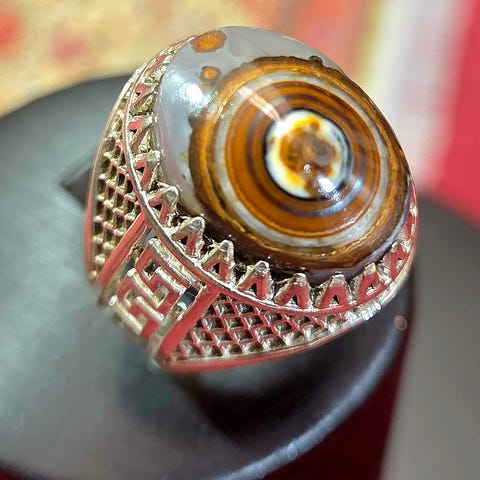 Nydelig sølvring pyntet med en naturlig svart agat på toppen.