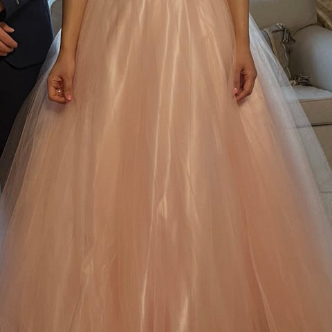 Nydelig ballkjole med knyting i ryggen. Kan brukes fra XS opp til medium. Underskjørt.