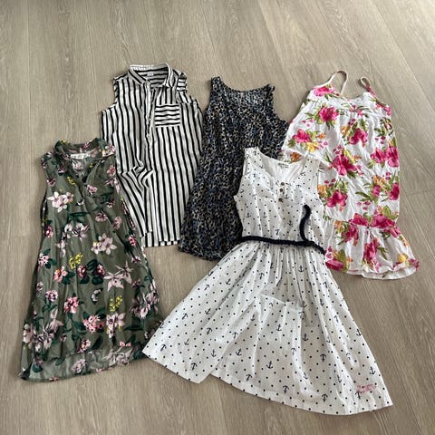 6 kjoler og 2 skjørt str 140/146 selges samlet. Alt er pent brukt.
