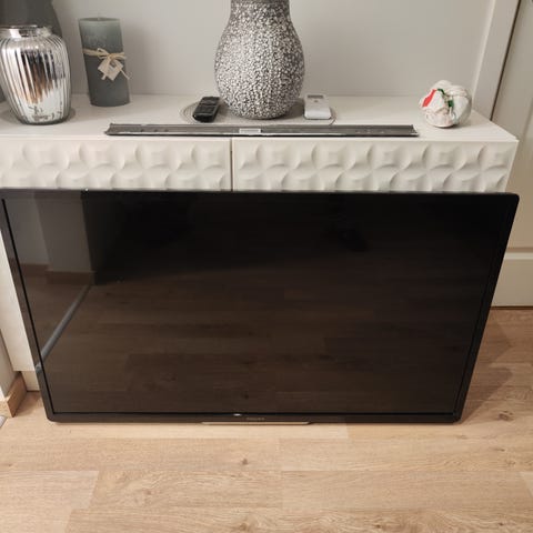 Selges pga flytting. Noen lysdioder(?) er løsnet. Se første bilde, men vises ikke så godt. Stått på soverom å har ikke plaget meg. Mulig jeg er vant til det da. Funker ellers som den skal. Følger med fjernkontroll.