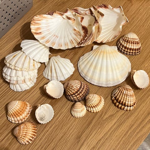 8 søte skjell formet serviett holdere, kombinert med navnelapp holdere. I hvit porselen.