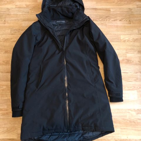 Jotunheim jakke i blå farge, størrelse M for dame. Hette med fuskepels.
