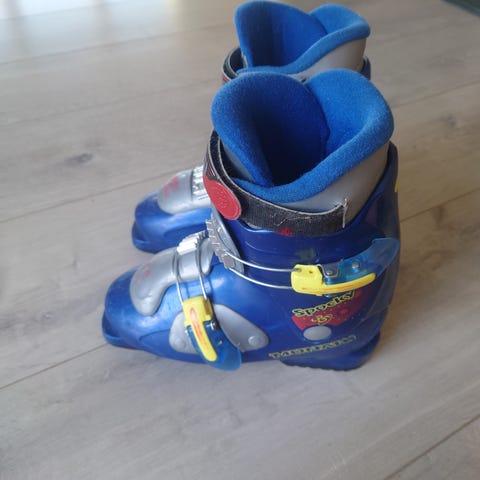 Nordica alpinstøvler i blå og svart farge. Str..23.5 (ca.37) Støvlene har justerbare spenner og er designet for å gi støtte og komfort ved alpinskiaktiviteter. Passer for unisex bruk.