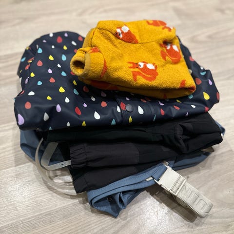 Klespakke med utebukse, jakke, flisbukse og flisgenser