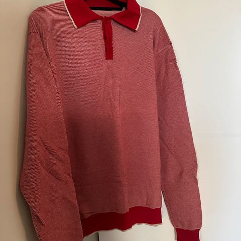 Batistini genser i størrelse XL, laget av bomull. Genseren har en grønn farge og er designet for menn. Den har knappelukking ved halsen og en lomme foran. Flosset innvendig. God og varm.