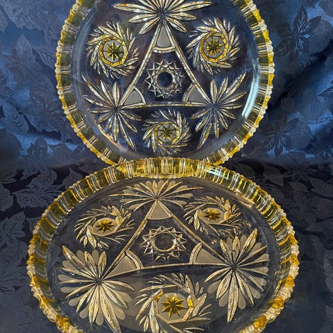 Åtte Harvey dessertskåler fra Aida i krystallglass. Dessertskålene er fått i gave, men er aldri brukt.