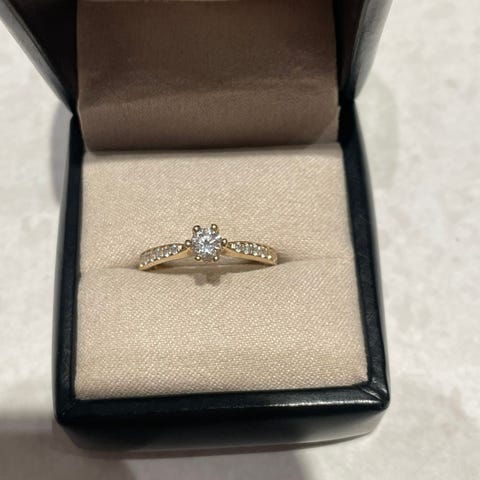 Veldig fin diamantring som gikk fikk under forlovelsen. Veldig lite brukt da jeg ikke er en ringperson.