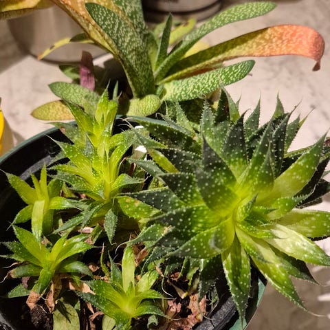 Usikker på navnet, men ligner på Aloe 'Quicksilver'. Potte ø: 6,5 cm. Substrat: mineralsk.