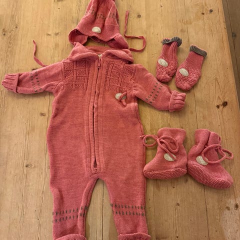 Lillelam ullsett i størrelse 62 for jente, i fargen rosa. Sett består av genser og bukse, laget av 100 % merino ull. Passer til barn i denne størrelsen og gir varme og komfort.
